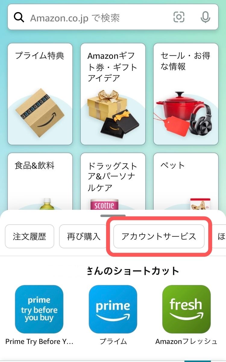- アカウントサービスを開く