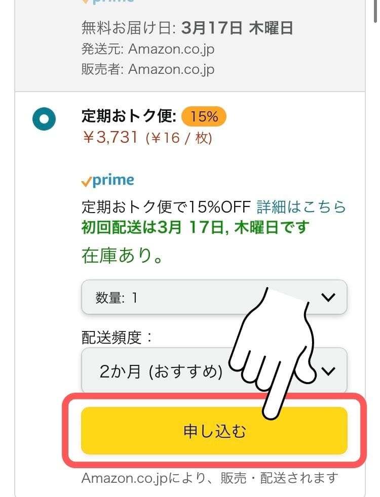 - 定期おトク便の欄から「申し込む」をタップ