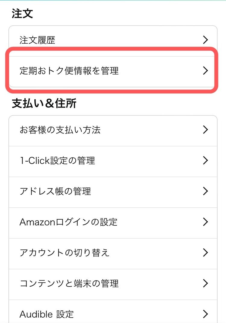 - 「定期おトク便情報を管理」をタップ